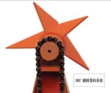 (8)兩面挑翻轉(zhuǎn)落料系統(tǒng) 該系統(tǒng)采用(A→B→A)的雙組循環(huán)工作模式,可分別進(jìn)行參數(shù)設(shè)定,分別進(jìn)行集料打捆,滿足不停機(jī)打捆的需求。 雙接料架(左右)接料,是減少停機(jī)打捆,提高生產(chǎn)效率的一種方法。鋼筋切斷后從翻板上落下,落到斜面排線架上滑到U型接料裝置內(nèi)儲(chǔ)存,是一種簡(jiǎn)單可靠的集料方法.