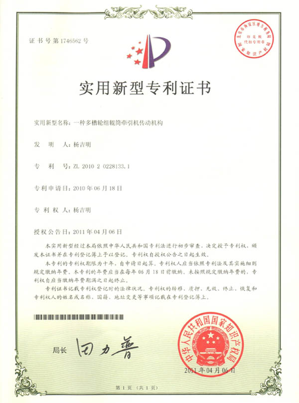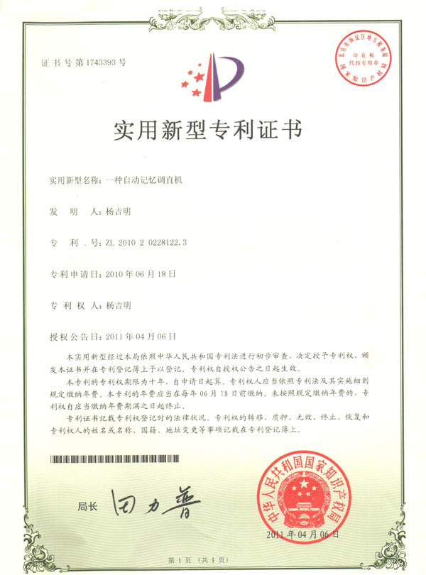 實(shí)用新型專利證書